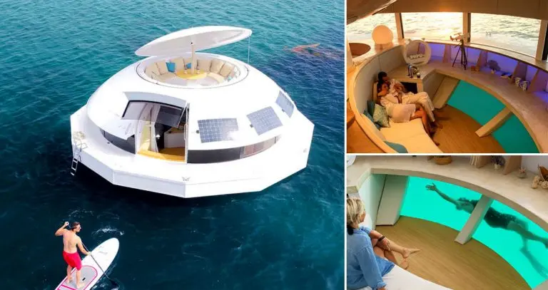 This luxury UFO-shaped water leisure craft boasts a whopping 583 square feet of space. The lower-level living area’s focal feature is a panoramic window that offers a 360-degree view of the seascape. We can definitely imagine how relaxing and exhilarating it would be to simply watch fish and other interesting sea creatures swim by!