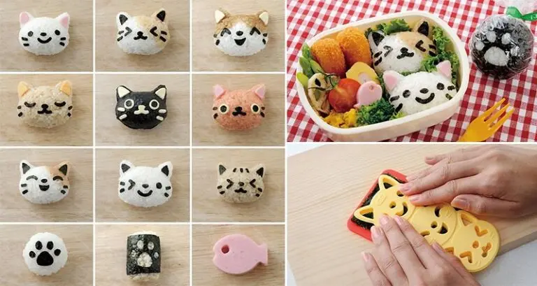 It comes with a tool to cut nori into whiskers, facial features and smiles.