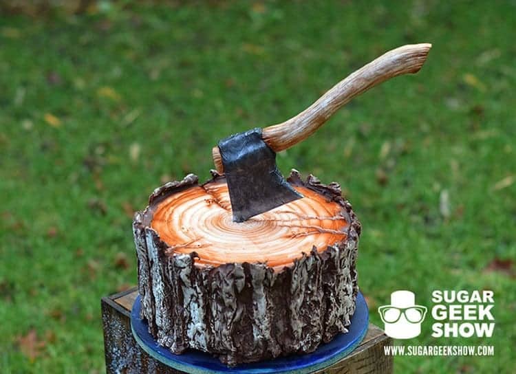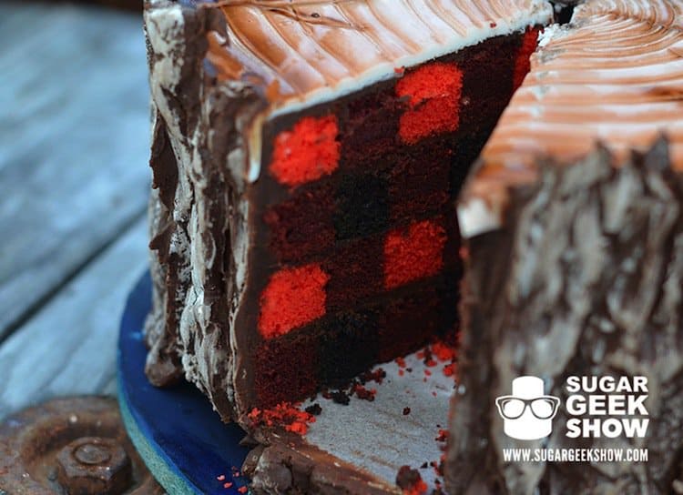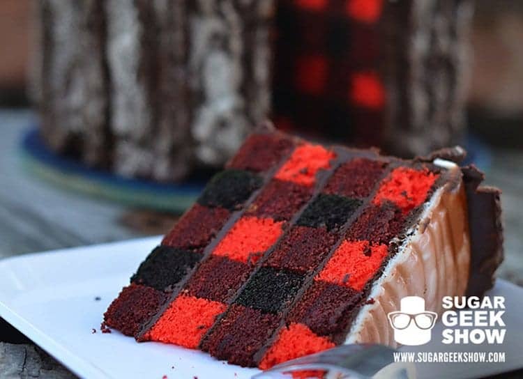 Elizabeth Marek is a cake making virtuoso. She is the owner of 'Artisan Cake Company', based in Portland, Oregon, and she regularly posts online tutorials instructing us mere mortals on how to create the most impressive of cakes, step-by-step. Her latest creation, pictured below, is dubbed 'The Lumberjack Cake'. Perfect for the woodsman in your life, the cake is fashioned as a tree stump with chocolate for bark. The inside of the cake features a complicated plaid pattern, while the edible ax is the perfect finishing touch! Take a look!