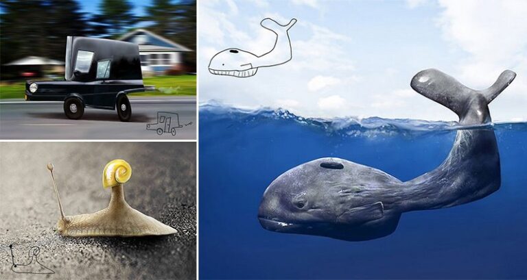 When he was four, Dutch muralist Telmo Pieper drew some cool little doodles; a snail with a tiny shell, a huge-headed butterfly, a very bizarre bear, and many more. Now, some 20 something years later and with a little help from Photoshop, he has recreated his childhood drawings in a more realistic way. Take a look below at some images from his Kiddie Arts series and let us know which one you like best in the comments below. The car is totally awesome!