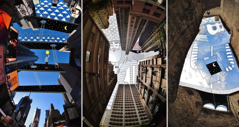 Large and imposing, shiny and new, skyscrapers are often the subjects of arresting images used on postcards and in artwork across the globe. But what if you took the space between the buildings and created your own version of the sky to go there? That's what Thomas Lamadieu, of Avignon, France, does in his amazing artworks. Inspired by urban architecture around the globe, Lamadieu creates trippy, surreal images that reveal his love of street art, as well as anything to do with the sky! Check out his awesome work below…