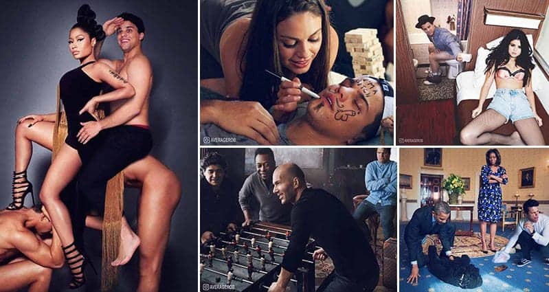 Welcome to part 2 of our series on images showing a hilarious guy Photoshopping himself into celebrity photos with unexpected results! We really like Average Rob’s sense of humor and his Photoshopping skills aren’t too bad either! These types of images really make us want to have a crack at doing some photo editing ourselves. We hope some of the celebrities involved in Rob’s images have been able to see his work and have a good chuckle! Keep going for more amusing photos!