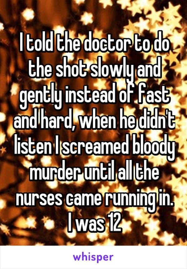 As if it’s not bad enough going to the doctor’s office already, when something super awkward or embarrassing happens, you just want to be able to turn invisible and slink away right there and then. The bright side of this, however, is that when it happens to someone who isn’t you, it’s actually pretty amusing. Thanks to the website “Whisper,” we have stories from thirteen people who had embarrassing things happen to them in the doctor’s office. From the person who spilled pee on their doctor to the person who fainted after every shot, we think these stories will put any awkward moments you’ve had to shame! Check them out!