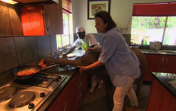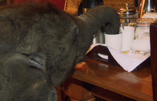 Meet 'Moyo', a cute-as-pie baby elephant who, thankfully, was saved just in the nick of time from a pack of hungry hyenas when she was just a few days old. The elephant, who had been abandoned by her herd and was attempting to cross a flooded river, was completely surrounded by the pack of hyenas when rangers found her, in Zimbabwe. They quickly intervened and took the baby elephant to Zimbabwe's 'Wild Is Life' sanctuary. When Moyo arrived there, founder Roxy Danckwerts became the orphan's new, adopted mommy! Now 14-months-old, Moyo follows Danckwerts everywhere, she even helps her cook! Take a look!