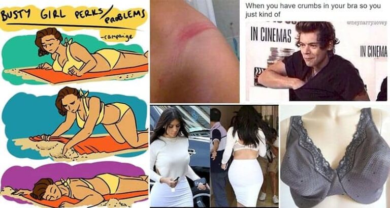 Modern society has an obsession with big boobies. Every year, thousands of women go under the surgeon’s knife just to get bigger fun bags, because they are viewed as sexy and desirable. Yet some of us, the ones born with gigantic melons, know the truth. Big breasts are nothing more than a pain! Not only do people stare, but they give us a sore back and leave us open to all sorts of breast-related fashion disasters! Like the problems highlighted below, take a look!