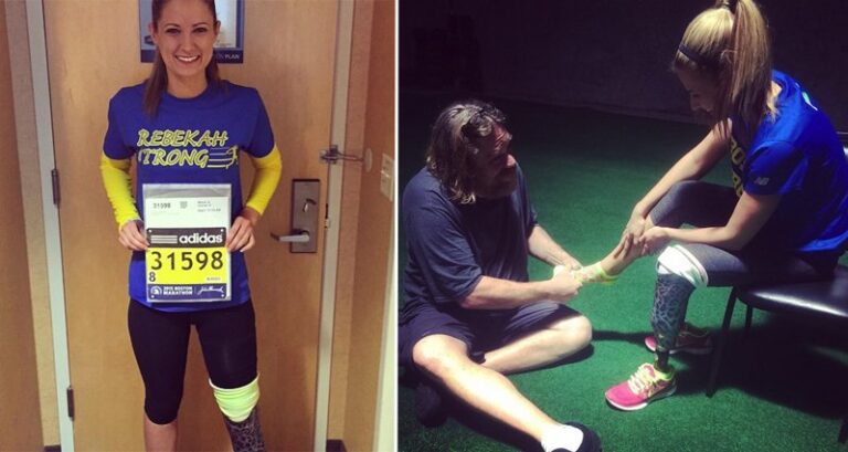 In 2015, Rebekah ran the last 3.5 miles of the Boston Marathon with the help of her prosthetic leg, which she affectionately calls, 'Felicia'.
