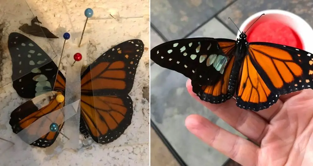 The success of Katie’s butterfly wing repair through transplant prompted the zoo to bring the monarch to her. Determined to repair the deformed butterfly, Katie went ahead with the transplant as can be seen on the step-by-step procedure below.