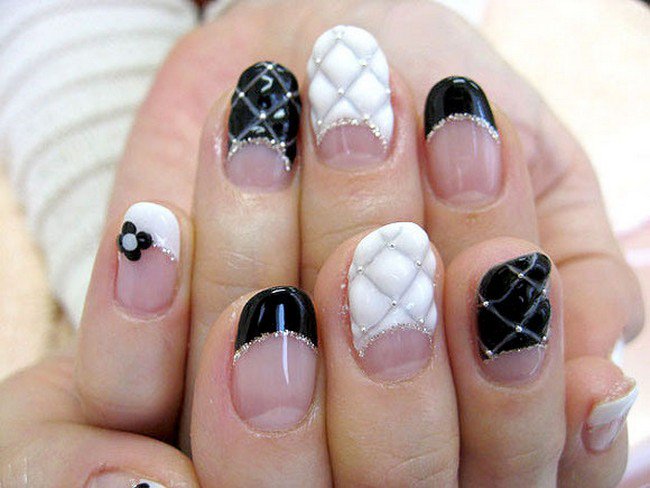 The contrast between the blue gloss beside the white textured nails looks amazing!