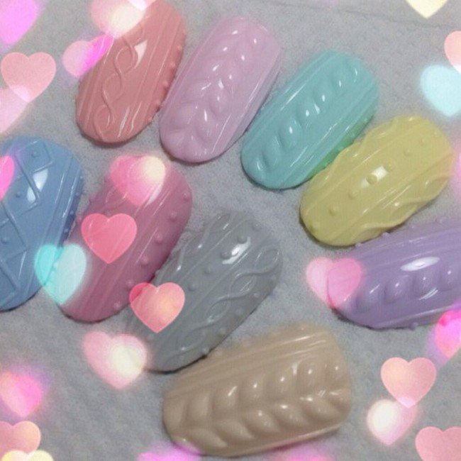 3D cable knit style nails are the latest trend sweeping through Japan at the moment. The Japanese are famous for their crazy fashion nails and not all designs are as wearable as this one. Once you know how, the technique is actually pretty easy to get right although there are of course so many variations on the design. It might also be an idea to get a friend to help you out as doing your own nails can be pretty tricky if you're less experienced. Take a look at the photos and tutorial below for some inspiration.