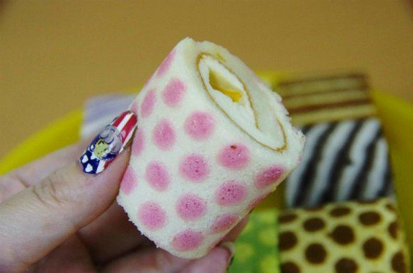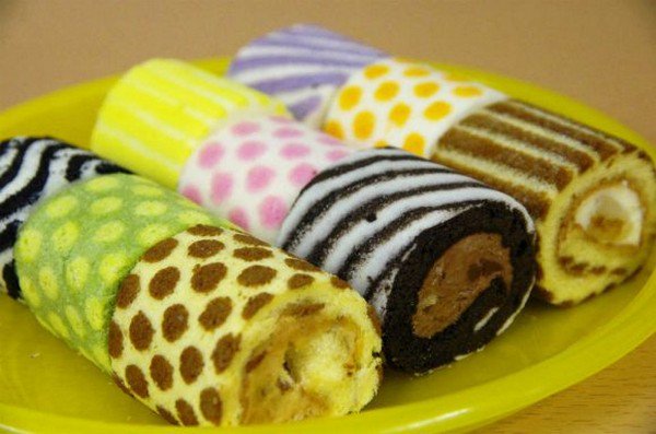 These awesome colored and pattered roll cakes are taking Tokyo by storm right now. These rolled sponge and cream tasty treats are a specialty of 'Irina' bakery in Tokyo. Costing around $3.47 a go, they're not exactly cheap but they look so mega-tasty that the price doesn't really matter does it? Every cake is hand painted and each different design and color has a different flavor! With 24 flavors to choose from such as caramel, almond jelly, lemon and more, these treats look and taste like a little puff of happiness!