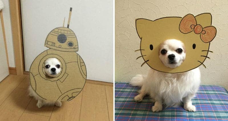 As long as your dog’s happy, dressing up your four-legged friend can be fun… not to mention cute! But buying lots of different outfits for your dog could end up costing a good chunk of money. If you’re more of a frugal person, take a leaf out of the book of Japanese dog owner Semba, who creates $0 cardboard cutout costumes for her pooch. However, what’s even more impressive than the costumes is that Semba’s dog, Chihuahua-mametaro, stays perfectly still for these photos to be taken. What a good pup! So, here are eleven adorable $0 dog costumes that will make you smile. Take a look!