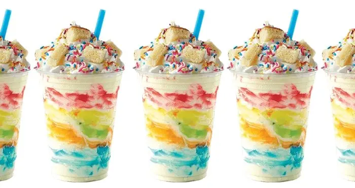 As if that’s not enough, the colorful shake is then topped with whipped cream, pound cake bites and rainbow sprinkles. If you love ice cream cakes then the Tie-Dye Shake is the perfect drink for you. You can find this limited-edition offering on the menu at your nearest Carvel location. Also, you don’t even need to step out of your house to get this beauty. When the craving for frozen treats hits, you can have Carvel deliver your order to your doorstep.
