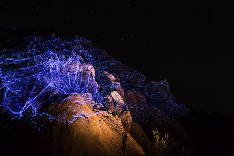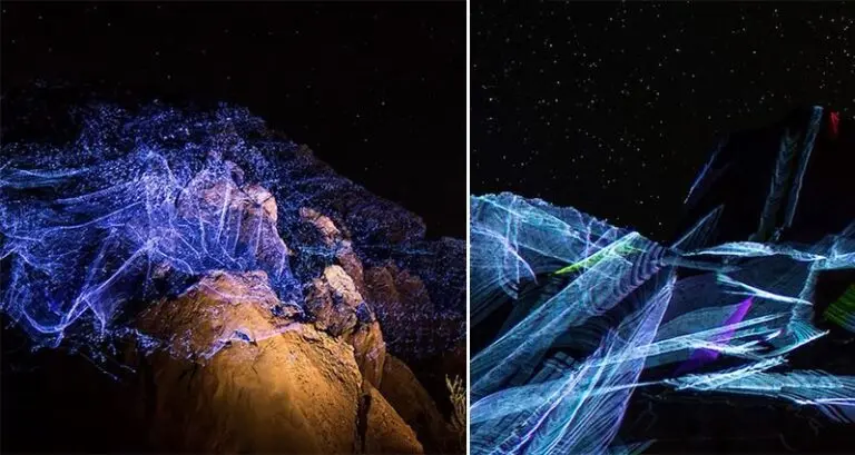 Berlin-based artist, Christian Mahler teamed up with 'Epicenter Projects' in 'Coachella Valley' to create the spectacular laser art you see below, it was beamed onto canyons in the 'San Andreas Fault' to create an awesome light show effect. Mahler called his series of art works 'Magnitude'. He told 'BoredPanda' he works representing 'a meeting point between art and seismology'. The patterns in each laser designs were created from digital line drawings, which are gestural markings suggestive of curve progressions seen within earth's tectonic deformations or the magnitude in the Richter Scale, he explained! Check out the awesome end results of this exciting project!