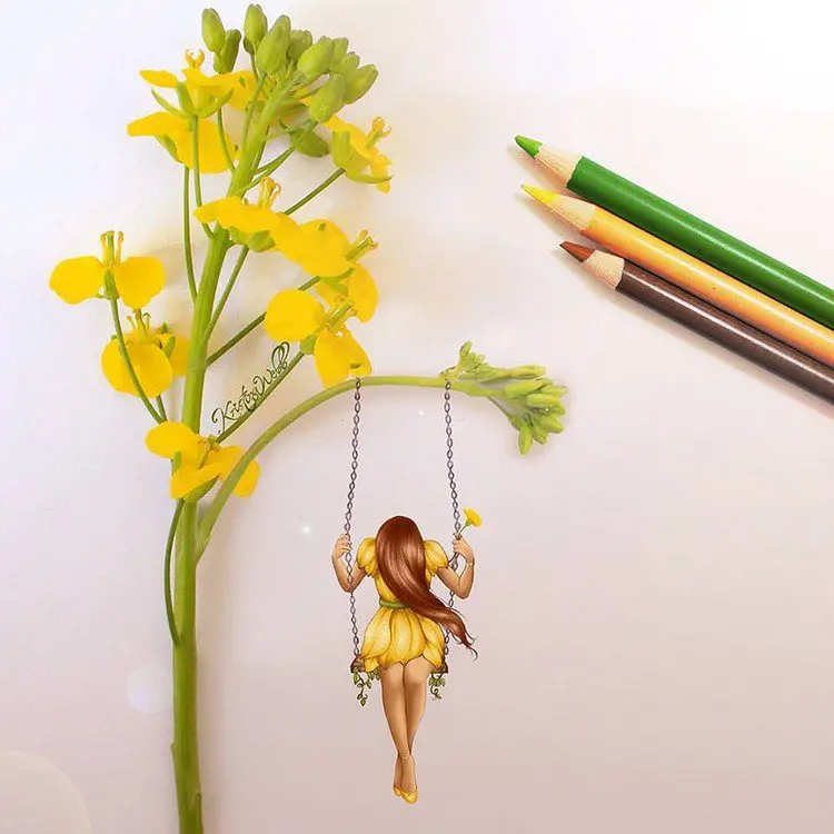 Many great artists have said that art is all around us, and viewers of New Zealand artist Kristina Webb can certainly vouch for that. Kristina goes beyond paper in her work and uses everyday things such as forks, flowers, salad and spaghetti to create her pieces! With over 2 million followers on Instagram, the 19-year-old is going from strength to strength creatively and has even released a book. Check out some of her beautiful work below!