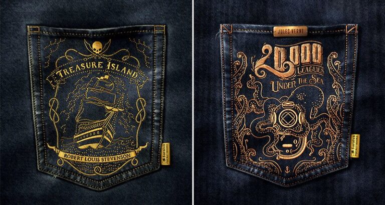 Saraiva's bookstore chain in Brazil came up with a creative way to advertise a new line of pocket-sized books coming into their stores. They had a number of famous book covers embroidered onto the back pockets of pairs of jeans, how's that for a novel idea! These embroidered jeans were used to create unique advertisements, but we really like the idea of this for fashion purposes. Too bad we're not embroidery experts! Check out these awesome designs, anyway!