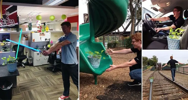 Reddit member 'CreaminFreeman', an IT guy from Augusta, Georgia, was asked by a coworker to look after her plant while she was off work for a few days. Being a great colleague, 'CreaminFreeman' took great care of the plant… taking it virtually every single place he went. For example, cute walks, a trip to the park, and he even taught the plant how to drive! We bet they both had an absolutely awesome time together. The photos are hilarious, take a look!