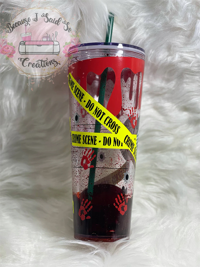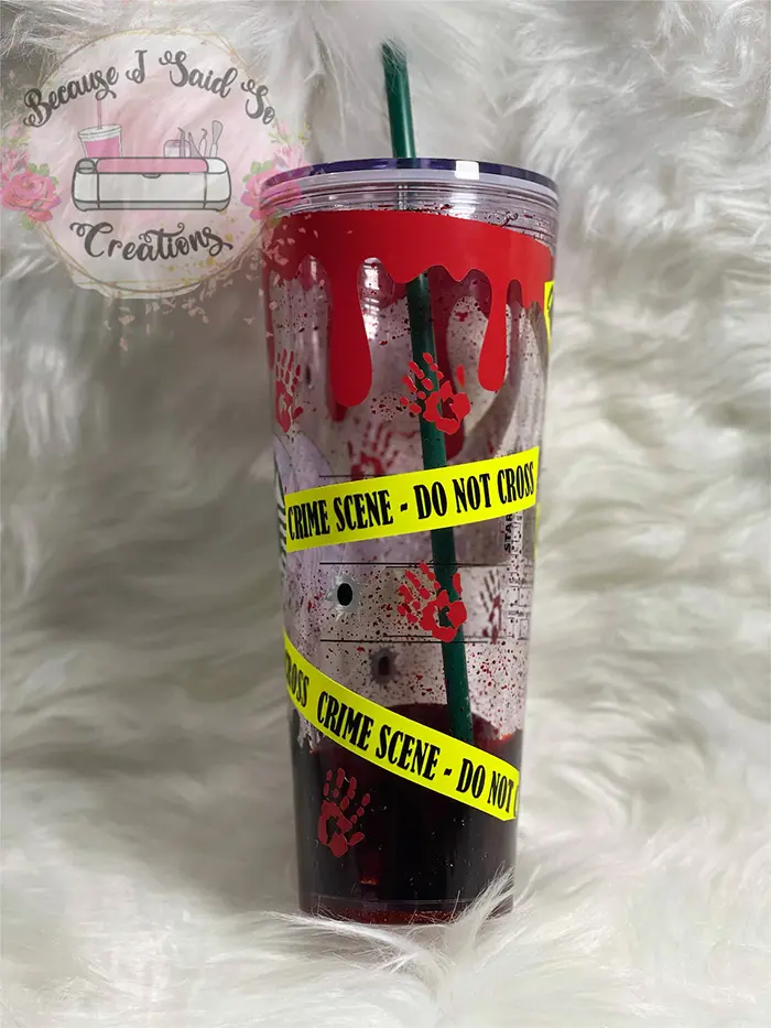 Demonstrate your love for gruesome tales and mystery-solving stories with this unique cup that looks bloody good. This Starbucks-inspired crime scene tumbler is sure to hype up the sleuth in you. Its eye-catching design features blood dripping from the rim, bloody hand prints and blood splatters printed all around the clear cup, and the yellow ‘do not cross’ tape that can incite excitement in all true crime fans.