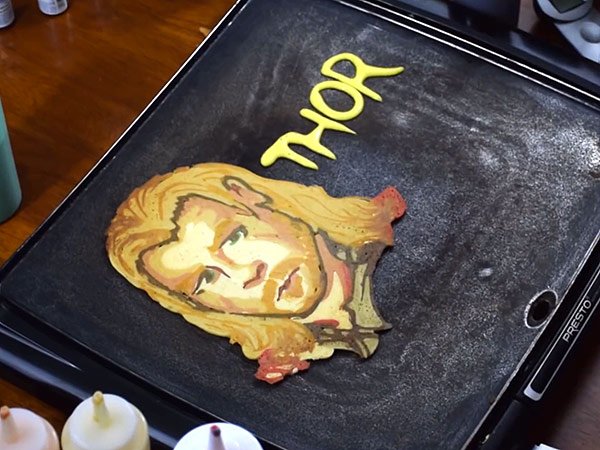 Here at Awesome Inventions, we know there are a lot of things you can use to create art, and we've featured most of them! Daniel Drake has created incredible portraits of characters from 'The Avengers', and what has he used?! Why, pancake batter, of course. These pancakes are just a little bit more super than the rest. Drake is also known by the name Dr. Dan The Pancake Man, and he creates all kinds of portraits and images in pancake form. For now, let's check out these pancake superheroes.
