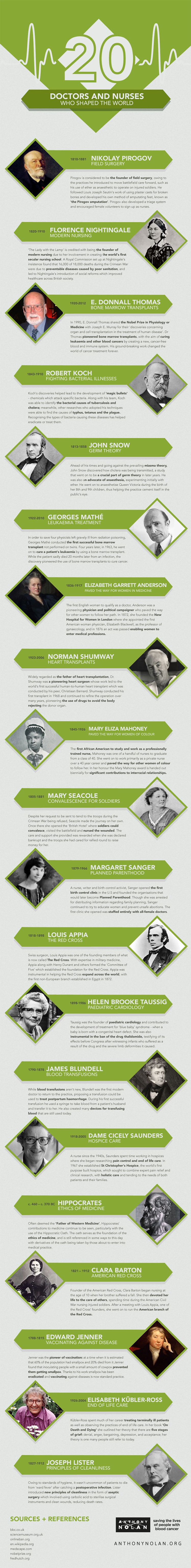 Although many people have a certain respect for doctors and nurses, sometimes they just aren't given enough credit. Not only do these people save lives and care for patients, some are responsible for medical revelations that are life changing. Below we have a list of 20 doctors and nurses from throughout history that shaped the world, people we should definitely be thankful for. Included you will find a description of what made these heroes so special. Take a look!