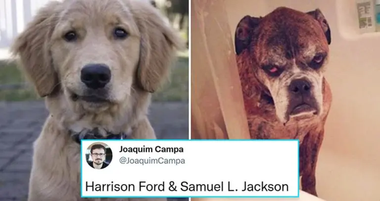 Twitter user Joaquim Campa posted a series of posts featuring photos of dogs that strikingly resemble some famous celebrities. One of the posts showed two pics of dogs – a smiling Golden Retriever and brooding boxer. On the caption he wrote the name of the celebrities who he thinks they looked like – Harrison Ford and Samuel L. Jackson. And you’ve got to admit – the resemblances are indeed uncanny.