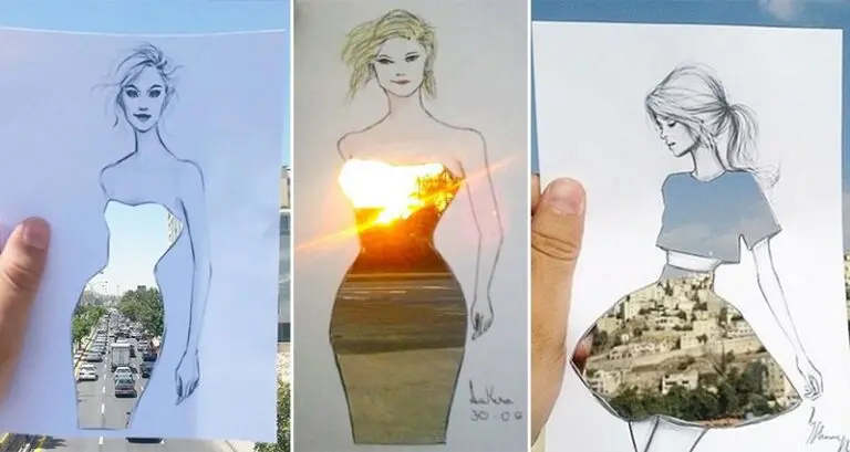 These heavenly illustrations are by Amman, Jordan-based fashion illustrator and architect Shamekh Bluwi. His illustrations have cut out parts which you can hold up against any background and the clothing becomes that thing. What a simple yet awesome idea… it looks totally amazing too! Check out the link and photos below and enjoy!