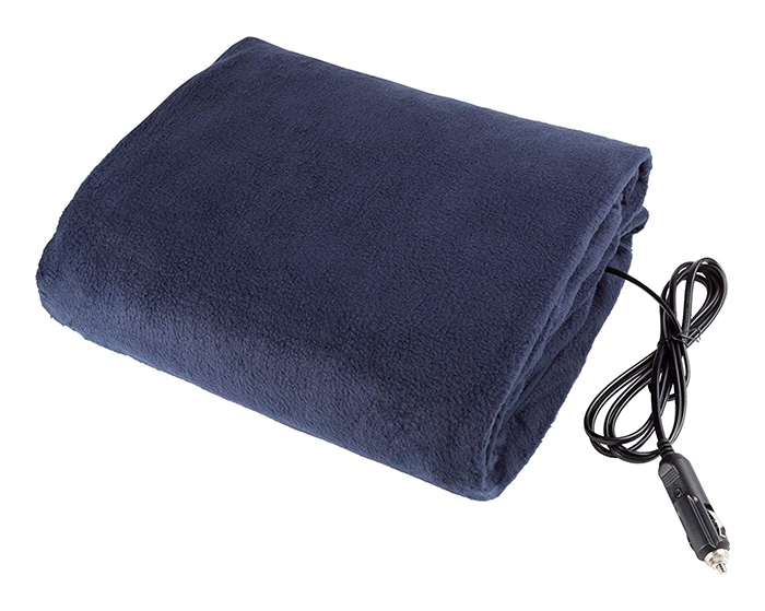 This cozy 12-volt heated blanket plugs into the cigarette lighter port in any car, truck, SUV or RV. It is made of super soft polyester that helps wick moisture and provides warmth on cold days. Furthermore, the blanket is filled with a thin wire that wraps around the inside. The wire is connected to a 96-inch long cord that is plugged into the car’s cigarette lighter socket. When plugged into the outlet, the cord transfers the heat into the internal wire which fundamentally acts as the heater.