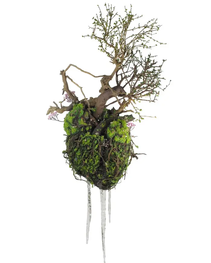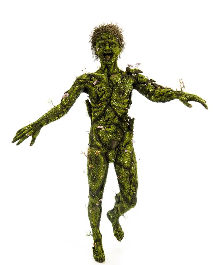 “The base of most sculptures are carved resin. They are then covered with synthetic elements and other nature [such as] flowers or roots that are painted and varnished.”
