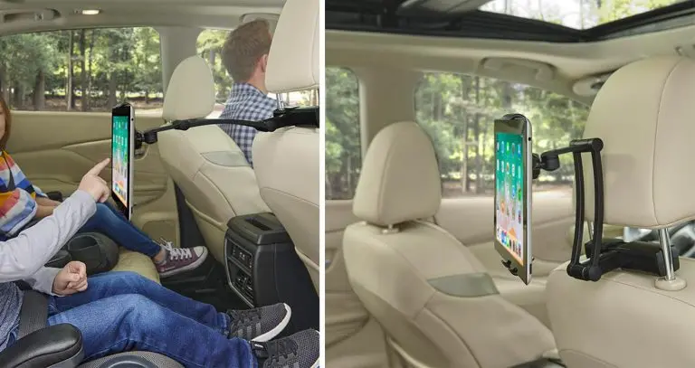 While you can find heaps of phone mounts for back seats on the market, none of them is no match for this phone/tablet cradle when it comes to adaptability and versatility. Most phone holders simply hold the device in place. Although some models allow the device to be rotated in any orientation, most of them could only bet set at a fixed distance. We found this long-armed phone holder with flexible swiveling joint that enables you to adjust the device forward and backward. So, you can find the best viewing angle and the ideal distance at any eye level.