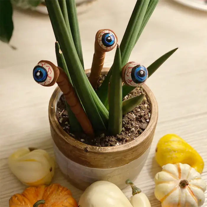 These creepy eyeball plants are not plants but are rather markers or stakes. So, don’t mistake them for the actual peek-a-boo herbs of the daisy family. And if you find those weird-looking plants creepy then you’ll certainly find these Halloween props even creepier. Inspired by the alien-looking flowers, this eerie decor features a large bloodshot blue eye sprouting from a long brown stem that also acts as the stake. Simply stick the pointed base into the ground or in a planter next to your plants. And watch the spooky eyes peak out from the leaves and bushes to keep an eye on you.