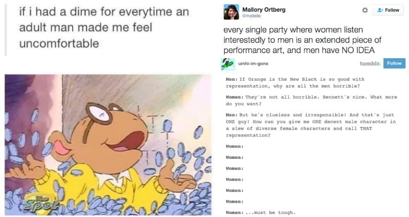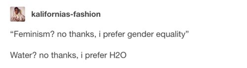 In some circles, feminism has become a dirty word, but the ultimate goal of feminism is to have gender equality (that includes equality between people of different races, classes, ableness and so on), and can that really be a bad thing?! With so many people dismissing the need for feminism, it's not surprising that self-professed feminists often take to social media sites, such as Twitter and Tumblr, to complain, commiserate, and joke around with other like-minded folks. Here we have fifteen awesome feminist posts that will make you laugh. Check them out!