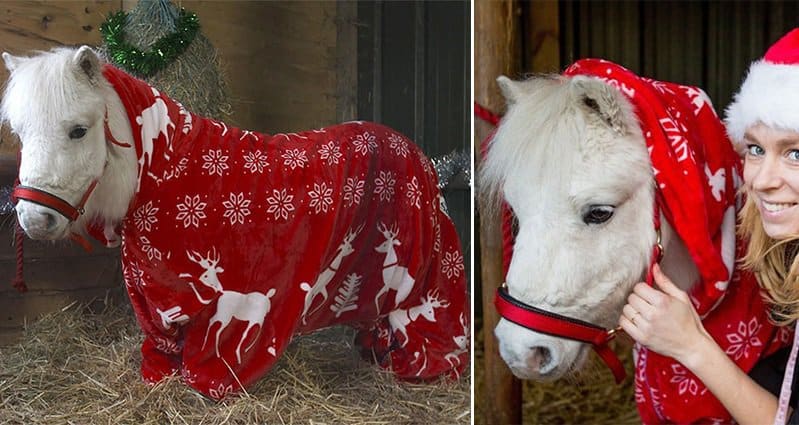 Most people have heard of, or own, a onesie. The full body garment brings us back to childhood, feeling all snuggled and enclosed. Well, now a new fashion-forward design suggests horses can get in on the comfy winter snuggle-suit action, too! Ascot Racecourse recently revealed its new 'foursie' made especially for Shetland pony, Daffy. Festive and cozy, it is hoped that the foursie will keep Daffy warm throughout the cold winter months. Apparently, he's the envy of the entire stable. Take a look!