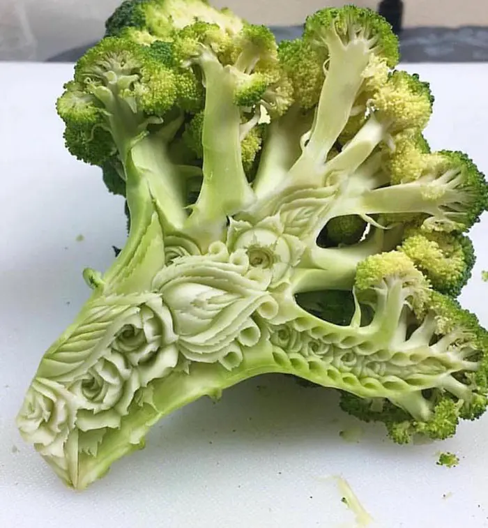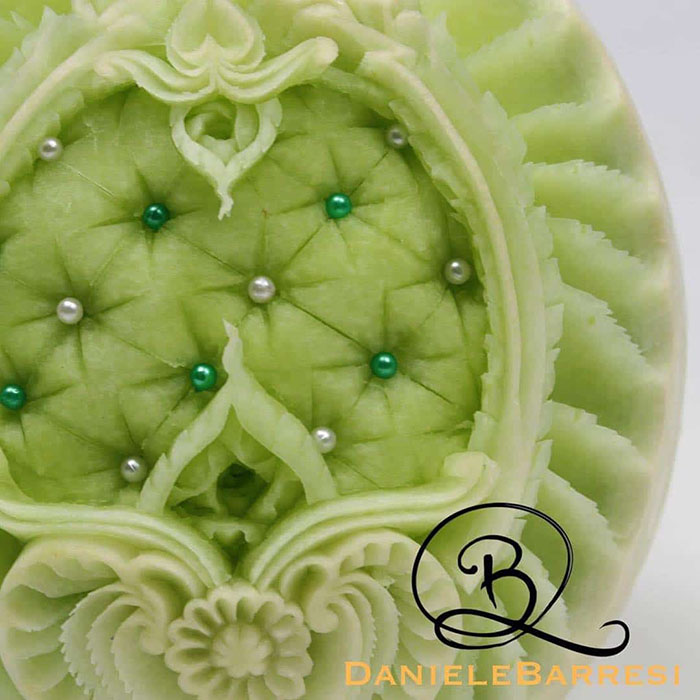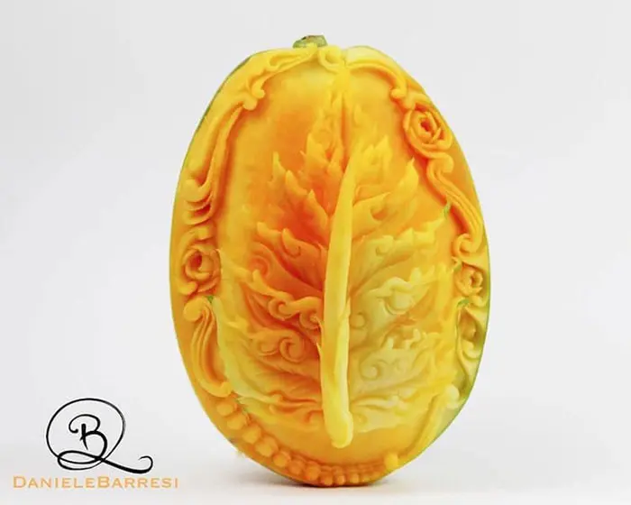 Talented artist Daneile Barresi carves beautiful sculptures. He doesn’t use traditional materials such as wood or stone. Instead, Daneile uses different fruits, vegetables and cheeses for his unique carvings. Despite the different inside textures of his canvases, he has managed to perfect the art of carving things such as; flowers and creatures into them.