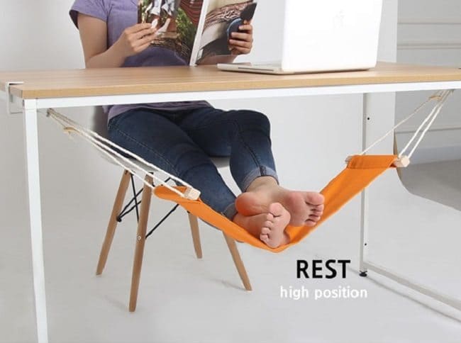 We'd all love to lay in a hammock and relax everyday instead of working, but for most people that is more of a fantasy than a reality! So how about the next best thing? Whether you're working or studying, the foot hammock will be sure to keep you comfortable while you're at your desk each day. It really is an office essential you didn't know you needed until now! It comes with two clips that attach to the sides of your desk which is where you hook the ropes from the hammock onto. It can be adjusted into a low or high position depending on your preference or what you're doing. There are different colors available and you can get it right here on Awesome Inventions.
