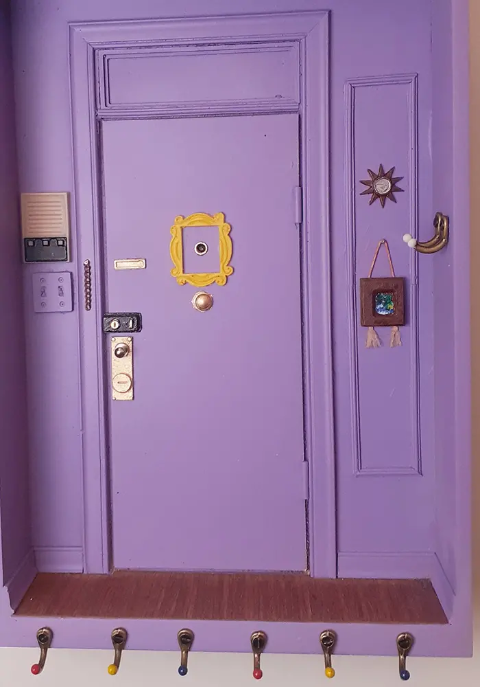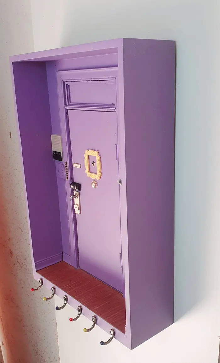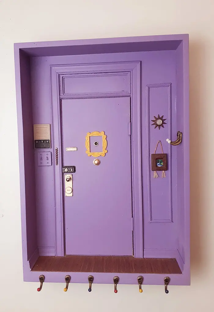 This wall-mounted key holder features an exact replica of Monica’s purple door from Friends