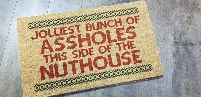 It’s Christmas once again so it’s time to re watch National Lampoon’s Christmas Vacation and hear Clark Griswold say ‘when Santa squeezes his fat white ass down that chimney tonight, he’s gonna find the jolliest bunch of assholes this side of the nuthouse’. But do you know what’s funnier than hearing that famous line? Getting a door mat that actually reads the hilarious quote from the iconic comedy film.