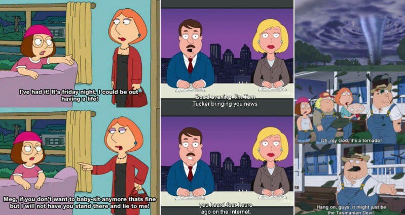 Over the years, Family Guy has had more than its fair share of controversy, but that’s never stopped it from being loved by millions. Sure, it might be pushing the boundaries when it comes to offensive TV, but it never claimed to be a show that everyone will enjoy. If you are a fan of Family Guy, you probably have your favorite moments from the show, and we do, too! It’s hard to pick a definitive list of the best and funniest scenes from the show. These are certainly among our favorites, but there’s not enough space to list every awesome joke! Here are thirteen classic moments from Family Guy that will always be funny. Check them out!