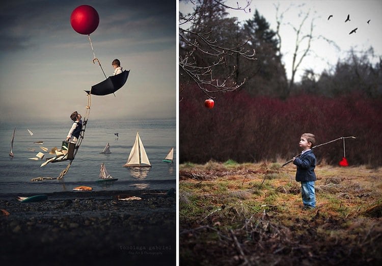 With the help of his three sons and some clever photo editing tricks, Gabe Tomoiaga creates the most amazing fantasy worlds of adventure and imagination. Tomoiaga's sons are all under the age of four and love to play outside in the fields, as kids do. Tooiaga uses their innocent play to help him construct the wild and surreal photographs you will see below. Take a look!