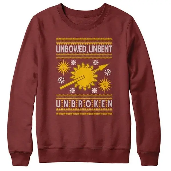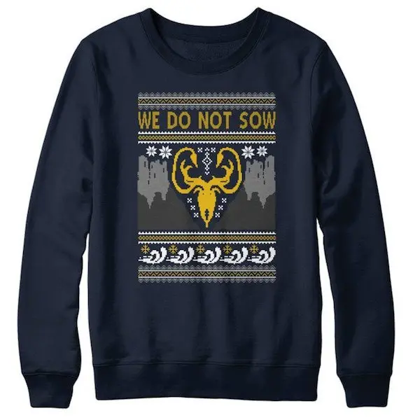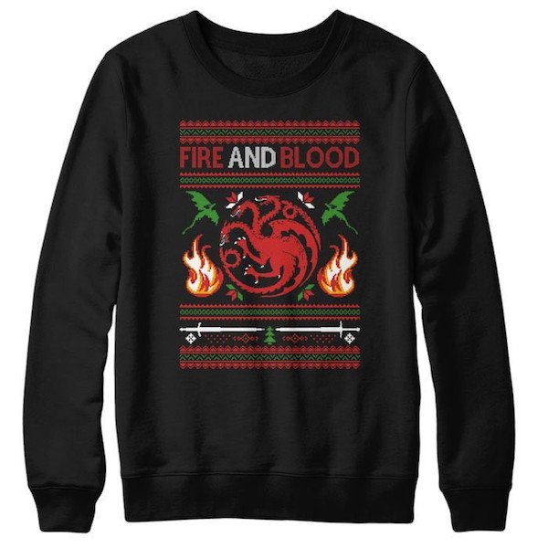 We're not sure if anyone truly loves those tacky Christmas sweaters. You know, the kind that your great aunt Mildred buys you and you have to wear it for half of Christmas day until she goes home. However, we think you will love these versions of the very same kinds of jumpers, but in 'Game of Thrones' style. These awesome sweaters feature house words and sigils, such as the Lannister lion and Targaryan dragon, but styled as though they were a classic Christmas garment. They were designed by artist 'Arinesart' for 'Once Upon a Tee', a company that specializes in limited run t-shirts and other garments. They won't be around for long, so why don't you treat yourself? Check it out!