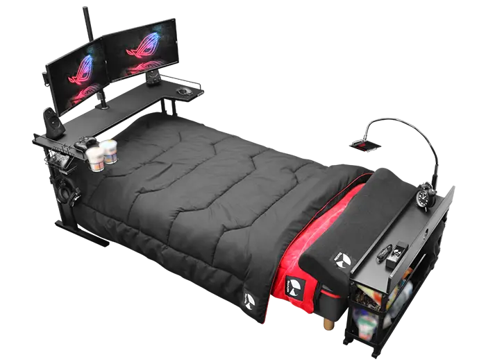 You can also opt to add a smaller desk to the side of the bed to place your keyboard. Of course, more multi-level shelves filled with drinks and snacks surrounding the gaming bed would make your dream life complete. You won’t even need to get out of the bed anymore, unless you need to use the bathroom. Can we just all agree that this is the perfect life?