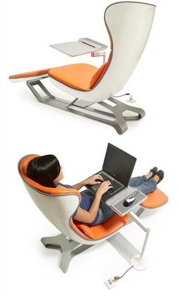 A stylish recliner with pull around table. Great for working on the laptop or getting some school work done.