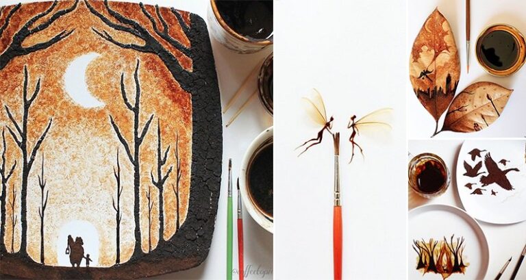 Painting with coffee seems to be a big trend right now as more and more artists are taking up the art form. Ghidaq al-Nizar from Indonesia is a little different in the fact that he uses both the coffee and the grounds to create the most beautiful images on leaves, plates and more. Using his morning coffee leftovers, al-Nizar ensures his art lives up to his name for it… #zerowastecoffee. Al-Nazar also loves to creates latte foam art which actually look like real paintings and can be seen on his Instagram page. Take a look at some of his beautiful work and enjoy!