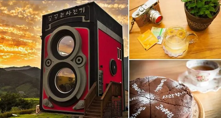 Park Sung-Hwan, an army aviation pilot and his wife who is a retired army aviation pilot, have a passion for photography. So much so that they have built this amazing cafe (which looks just like a giant Rolleiflex camera) right next door to their home!