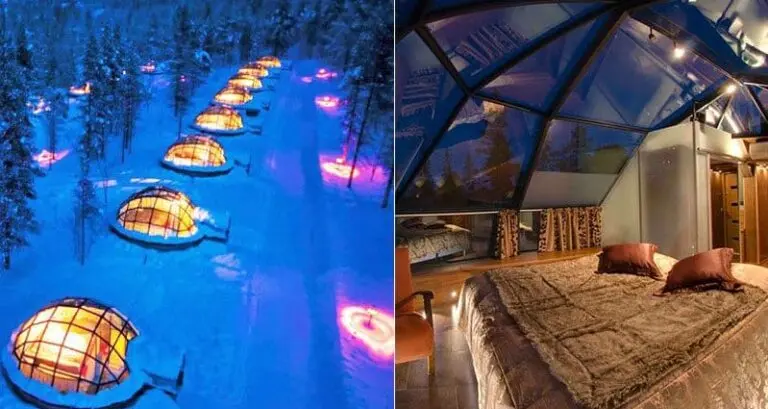 If visiting Finland to see the Northern Lights is on your lifetime to-do list, then we’ve found the perfect location where you can stay in ultra comfort and unique style. Deep in the wilderness in Finland’s Urho Kekkonen National Park you will find these amazing thermal glass igloos. They are part of the Kakslauttanen Arctic Resort, which also offer awesome log cabins and snow igloos to stay in. Personally we would love to try out the glass igloos. Imagine being all warm and cozy tucked up in bed while gazing at the most beautiful display of lights and colors in the sky!