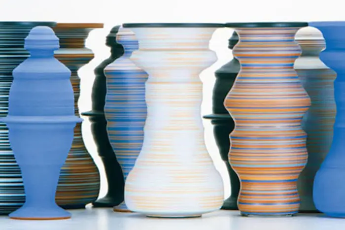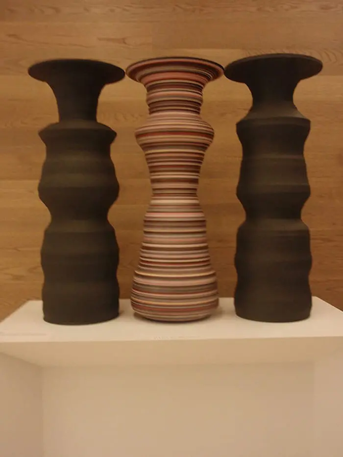 Greg Payce renders the Rubin’s vase in its 3D form by creating optical illusion vases that reveal figures and silhouettes thru the negative space