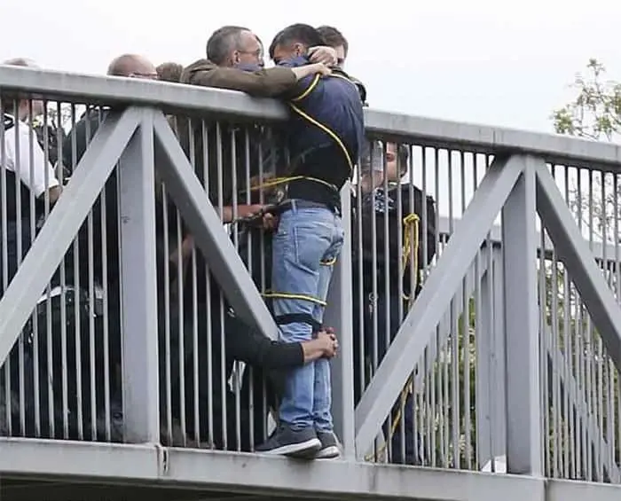 When this man was trying to commit suicide and people were holding on to him: