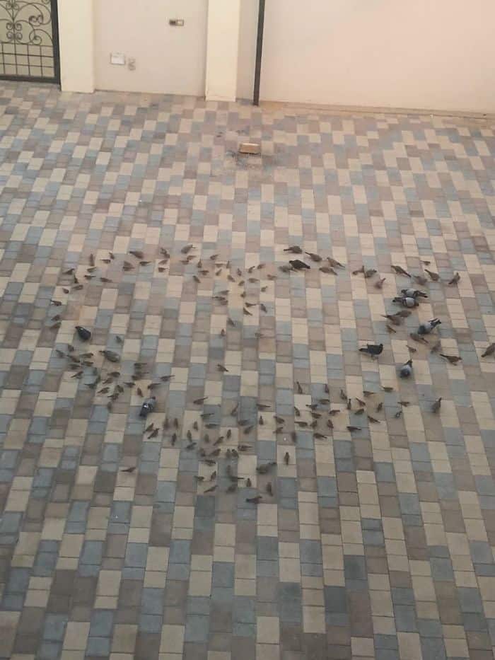 A father places bird food in their yard for her wife to wake up to this view every morning.