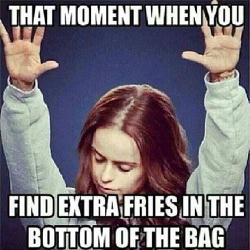 Welcome to the final part of our series on hilarious and random life-moments images we can all relate to! Depending on your opinion, the images in this post might just apply to ‘we saved the best for last’! We love the ‘when you touch gum under the desk’ image, isn’t it just awful?! And, isn’t it so true that many of us will say we are having ‘a glass of wine’? A bottle, more like! It’s not all bad though, how great is it when you find extra fries in the bottom of your fast food bag? Hallelujah! Take a look and enjoy!