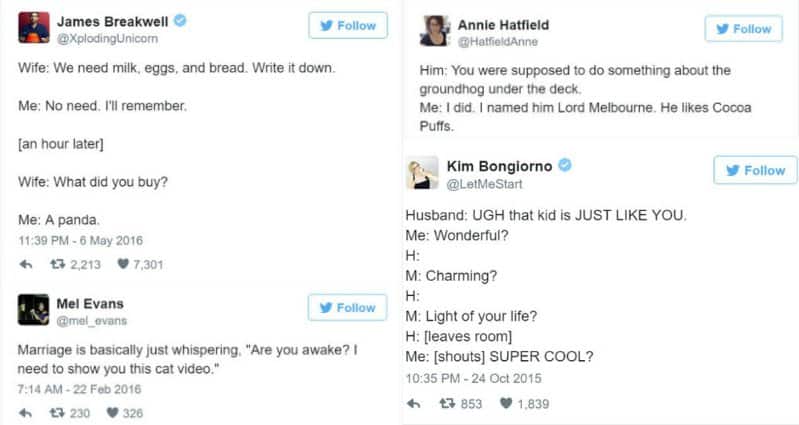 Tying the knot and living your life with that special someone is awesome. But, just because you’ve got a great life with someone, it doesn’t mean it’s perfect, because nothing ever is. The trick is to love those little quirks of your partner’s, even when they’re kind of pissing you off. And to find humor in your marriage, too! If you’ve already looked at the first half of this post, you’ll know what we mean! Here are another eleven hilarious tweets that married people will relate to. Check them out!