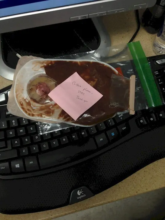 Chocolate pudding in a colostomy bag would freak anyone out!