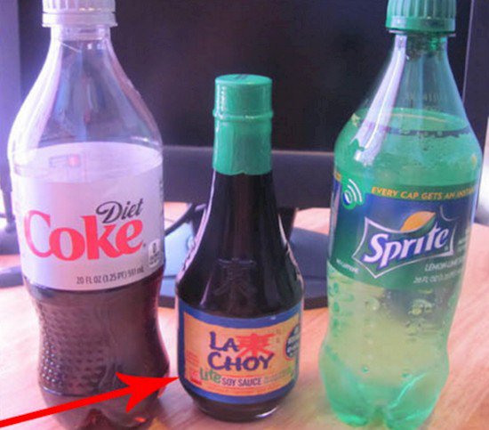 Add soy sauce to ‘Sprite’ to create a dark color and then put it in a ‘Coca-Cola’ bottle! Watch your friends squirm!